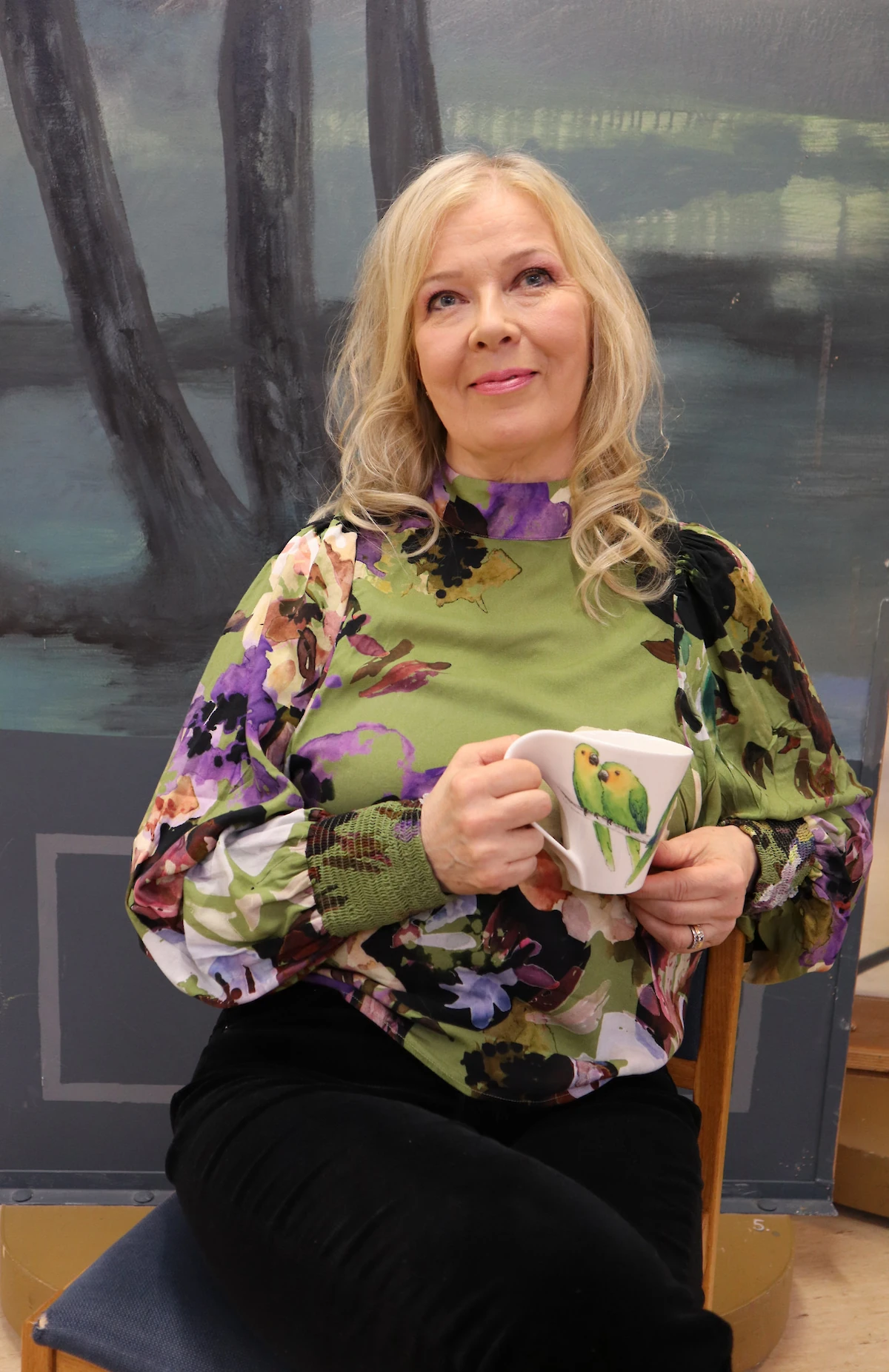 Aamukahvilla Kirsi Saaren kanssa.